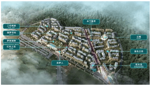 三亚九坤爱上山胡想小镇为 40 年产权文旅贸易小镇,